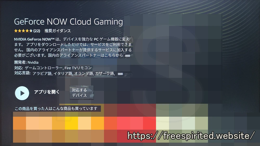 - Amazonアプリ「GeForce NOW Cloud Gaming」