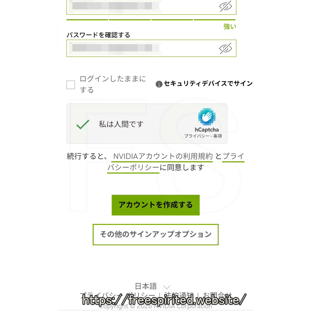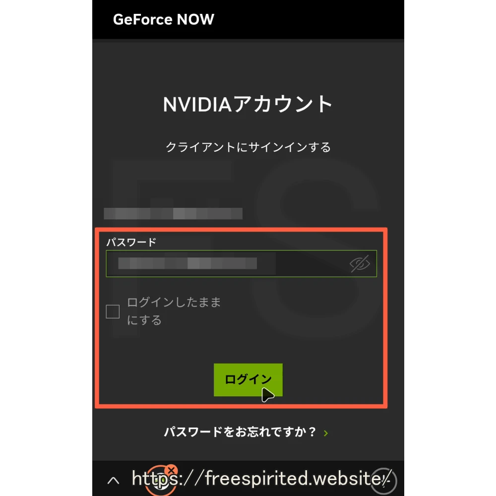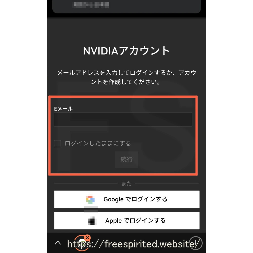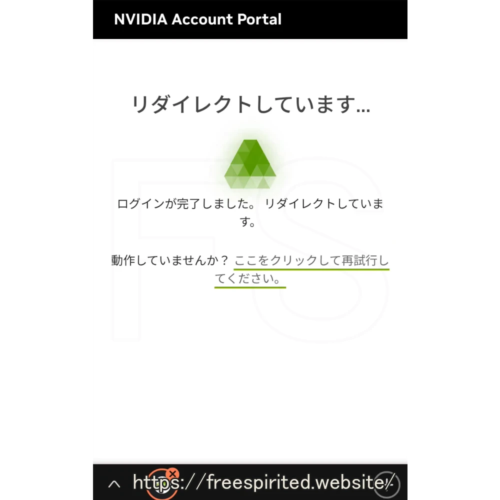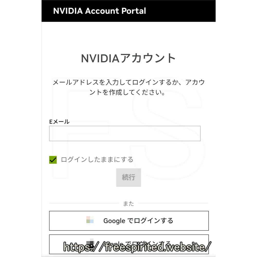 少し経つと『NVIDIAアカウント』のログイン画面が表示されるのでログインします。