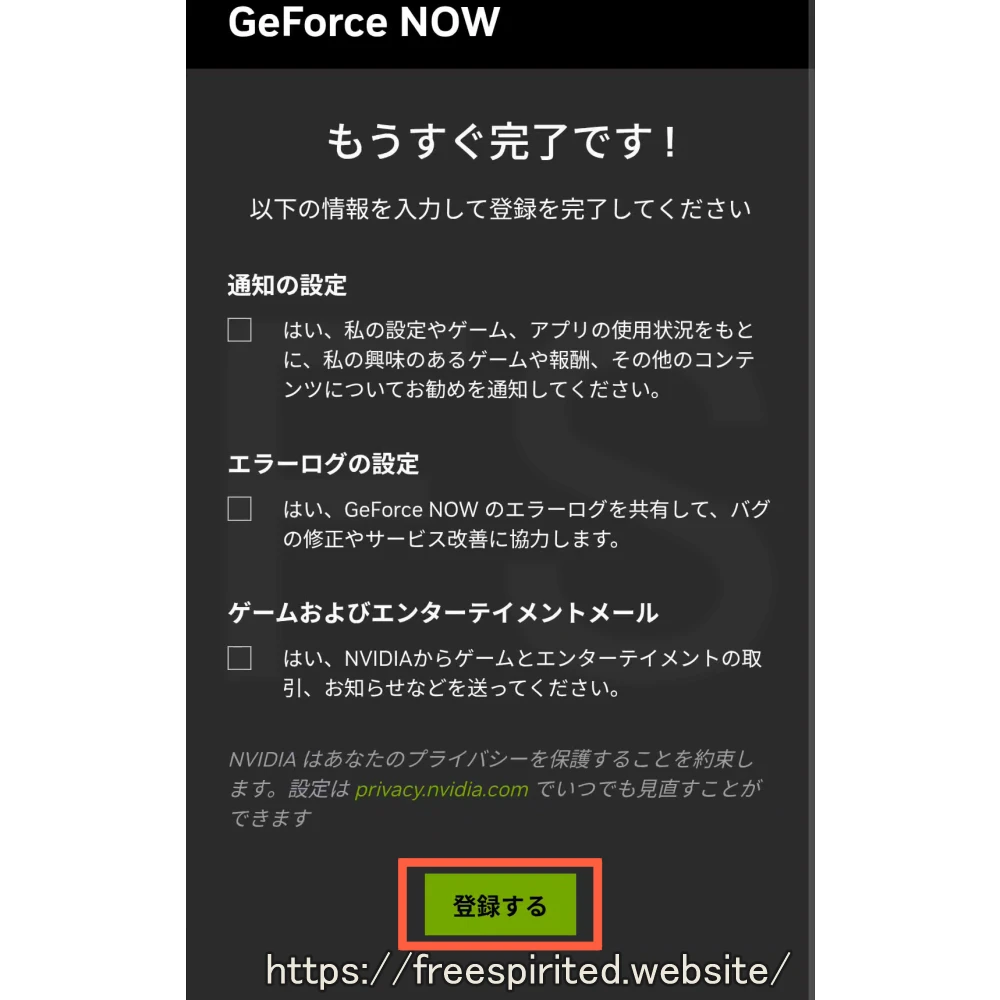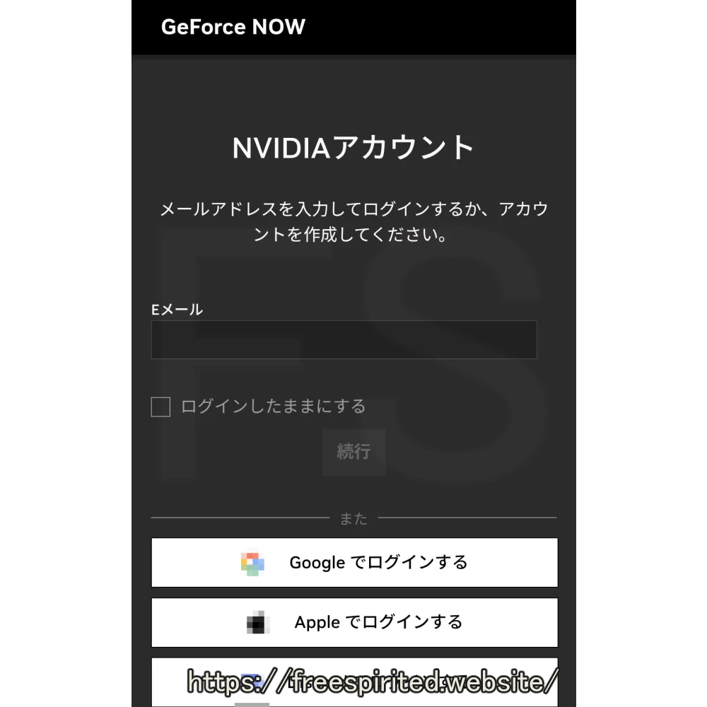 次はクラウドゲーミングサービス『NVIDIA GeForce NOW』への会員登録です。