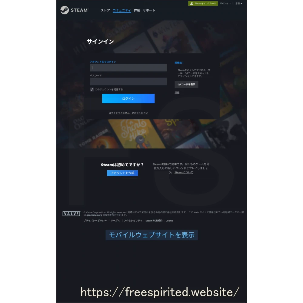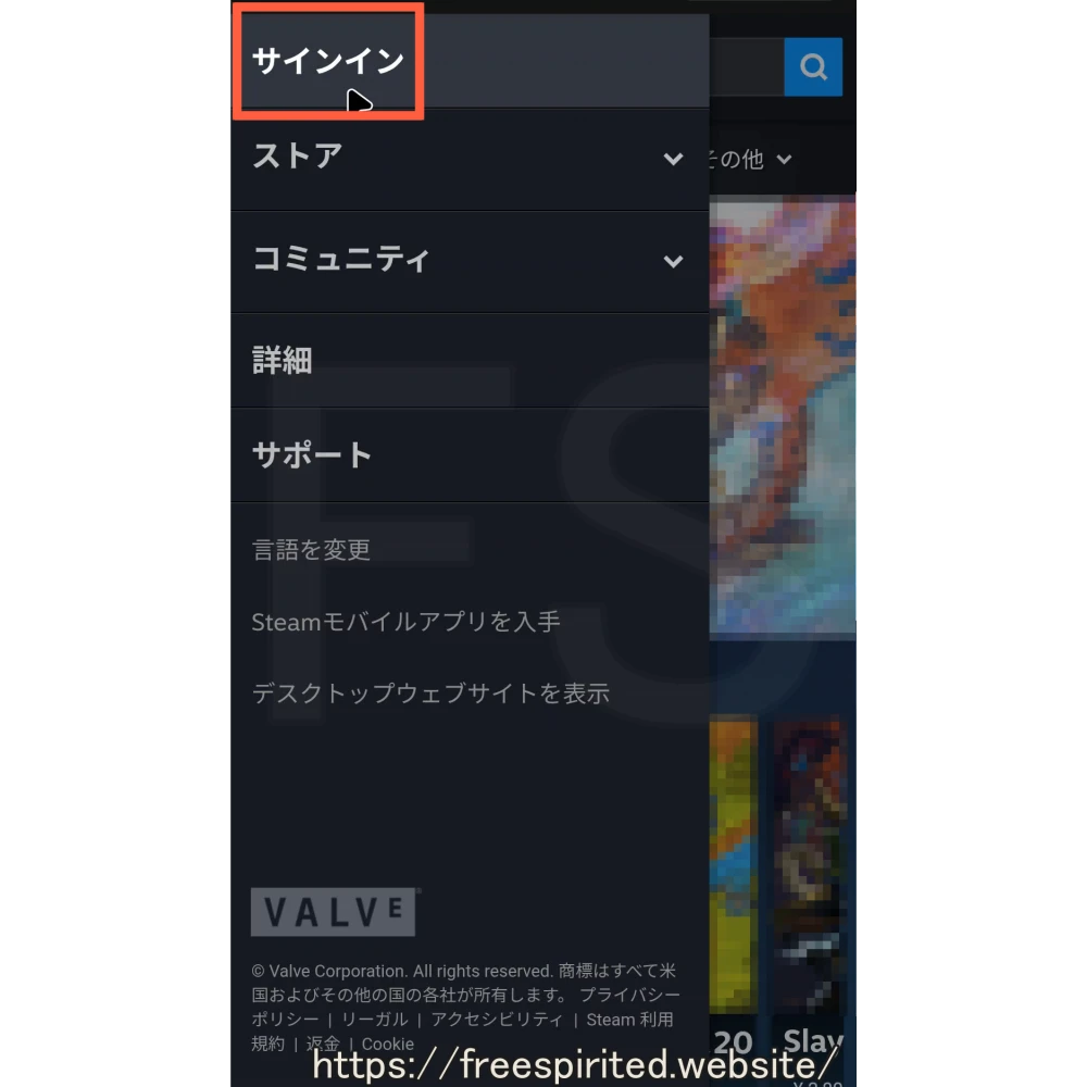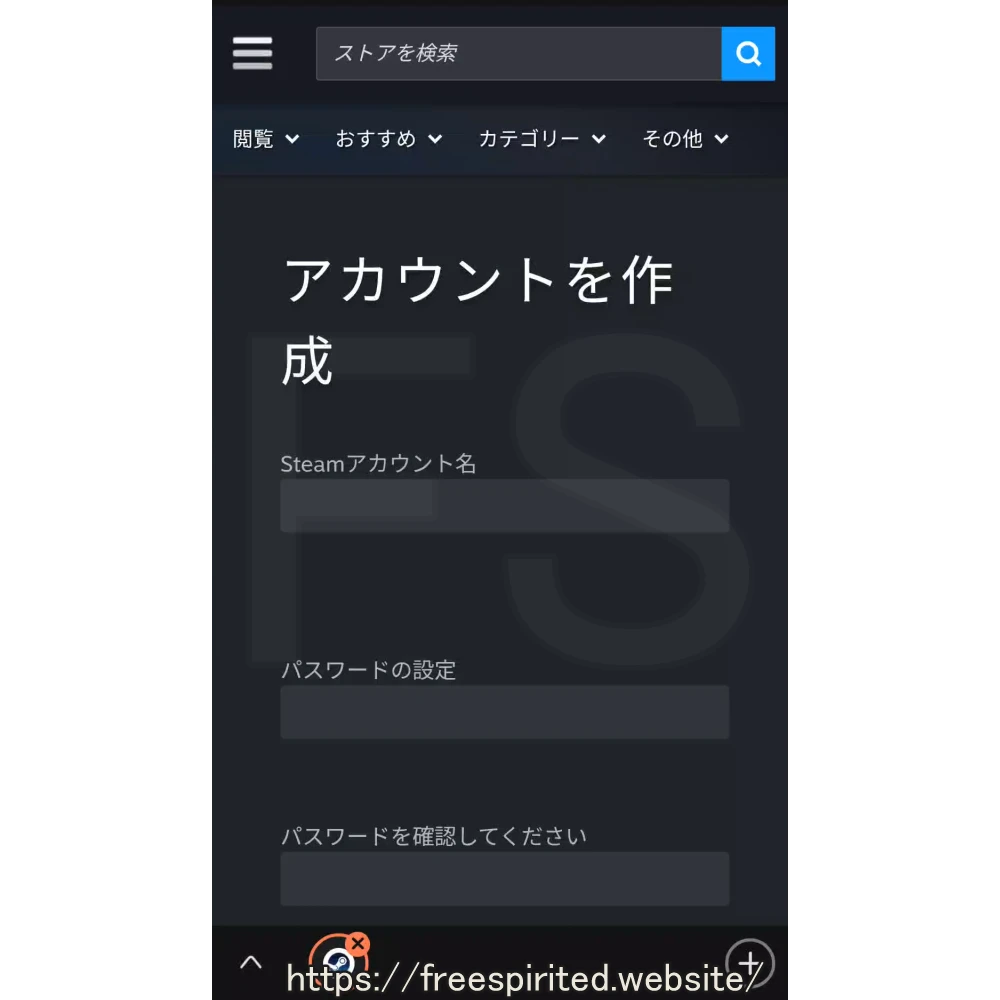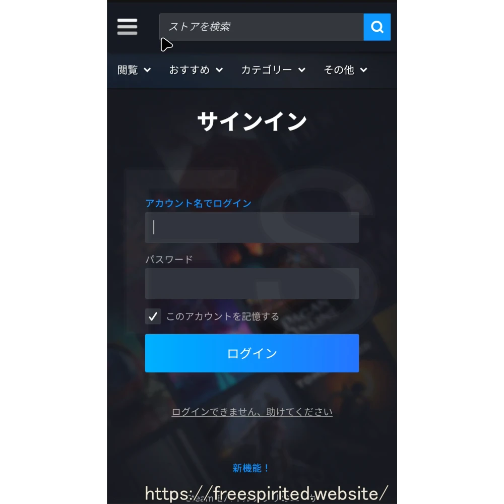 スマートフォンを使ってSteamのサイトへ行きます。
