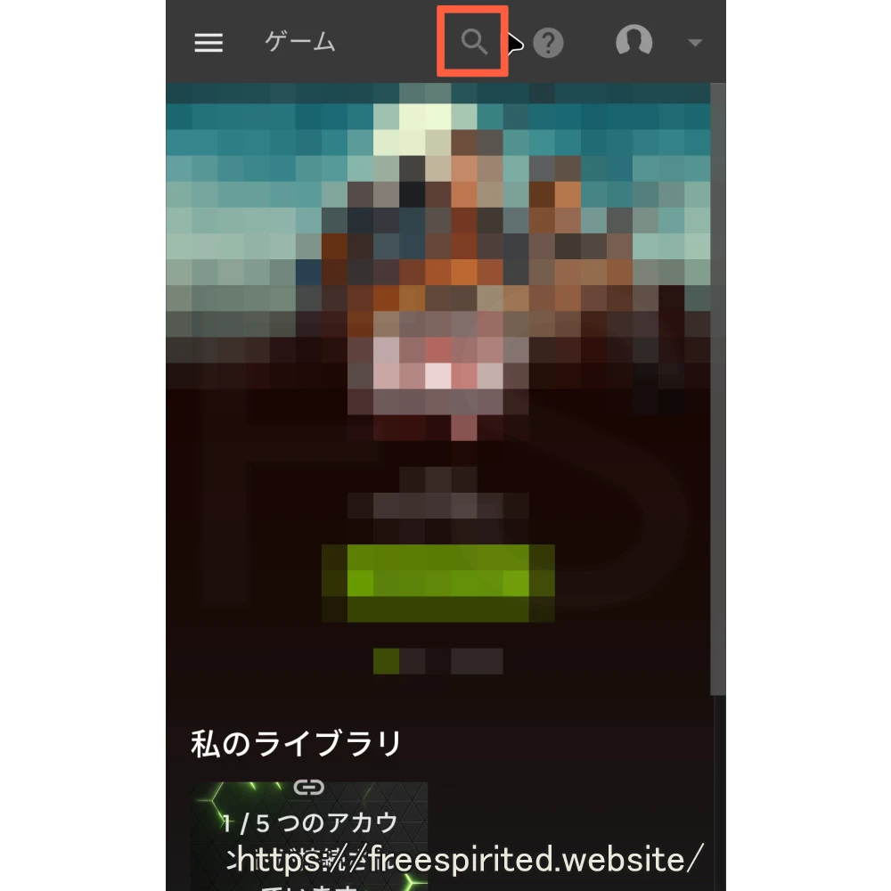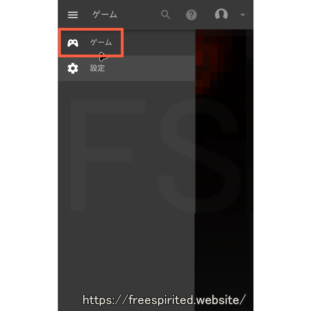 もしゲームが表示されていないなら画面左側の「🔍(虫眼鏡アイコン)」を選択してゲームを検索します。