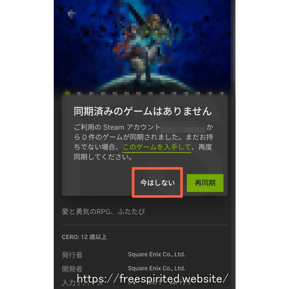 GeForce NOWとSteamを接続できたら遊びたいゲームを選択します。