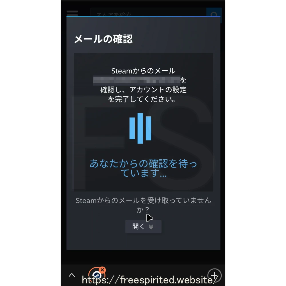 Steamから届いたメールにある「メールアドレスを確認する」をタップ。
