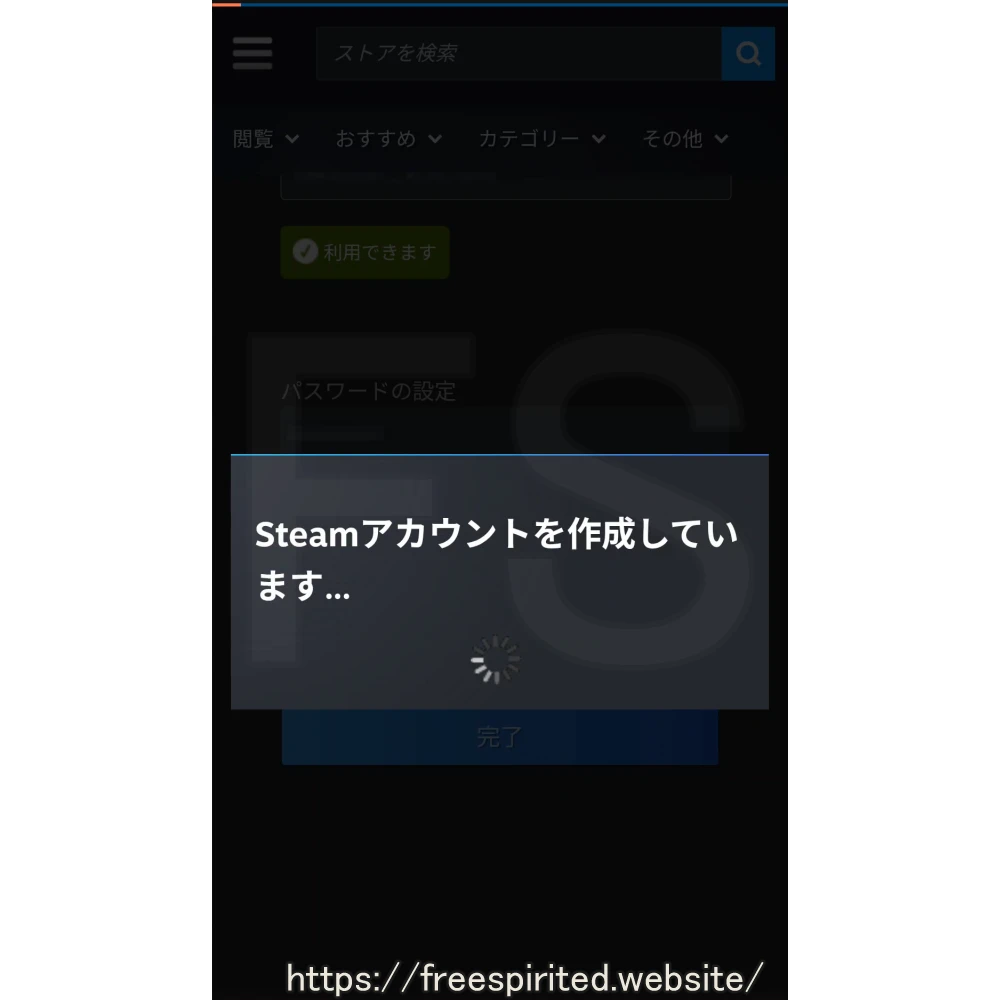 『Steamアカウントを作成しています』と表示され、Steamの画面に自動的に移動すれば登録完了です。
