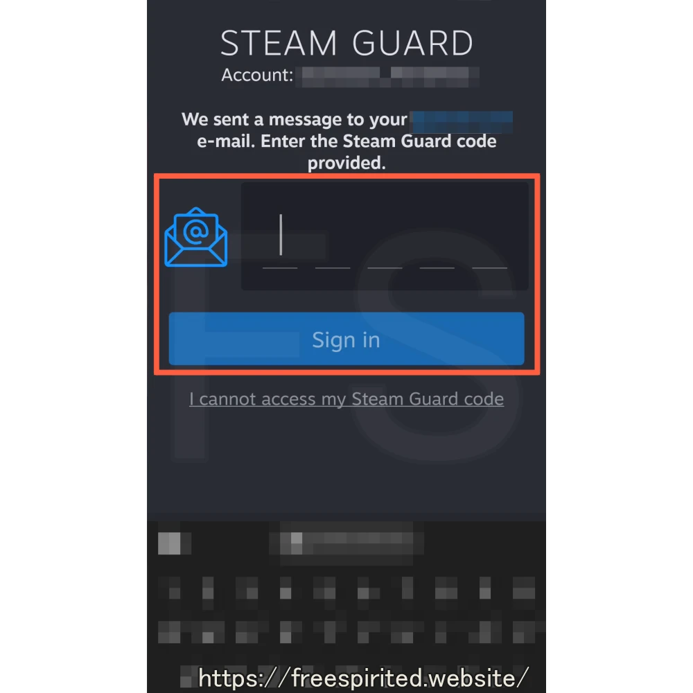 Steamに登録したメールアドレスにコードが届くので、メールの受信箱を確認してコードを入力(コピー&ペーストでもOK)して「Sign in」をタップ。