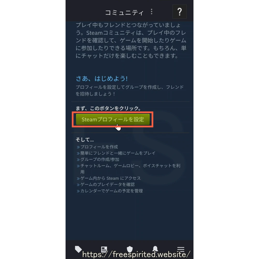 スマートフォンでSteamアプリをインストールします。