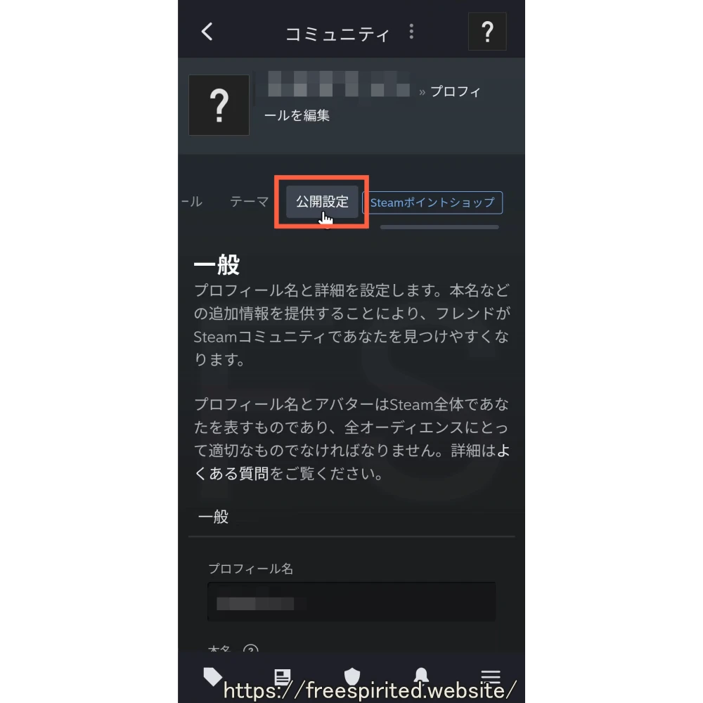 Steamアプリで「公開設定」の変更(GeForce NOWの接続に必要)